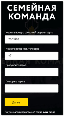 2. В открывшемся окне укажите номер карты с оборотной стороны (фото 3). Начальные цифры уже указаны. Также напишите свой телефон (действующий), на который придёт смс-сообщение для активации. Придумайте пароль. Затем нажмите "Далее".